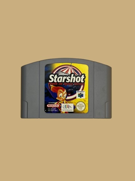Starshot: Panic in the Space Circus is a colorful 3D action adventure game released in 1998 by Infogrames for the Nintendo 64 (and later also for PC). The player slips into Starshot: Panic in the Space Circus into the role of Starshot, the young rocket launcher of the intergalactic Space Circus, who is on a mission to ensure the survival of his flashy circus company.
