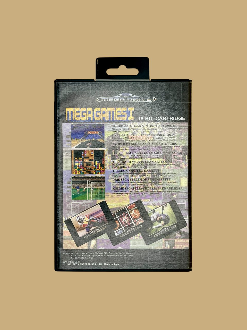 Mega Games 1 is one of the best-known game collections for the Sega Mega Drive. There are three complete games on the Mega Games 1 module: Columns, Super Hang-On and World Cup Italia '90. Anyone who owns Mega Games 1 has access to three classics that have shaped the Sega Mega Drive over the years. Mega Games 1 sold millions of copies, especially in Europe, and was often included with the Sega Mega Drive.