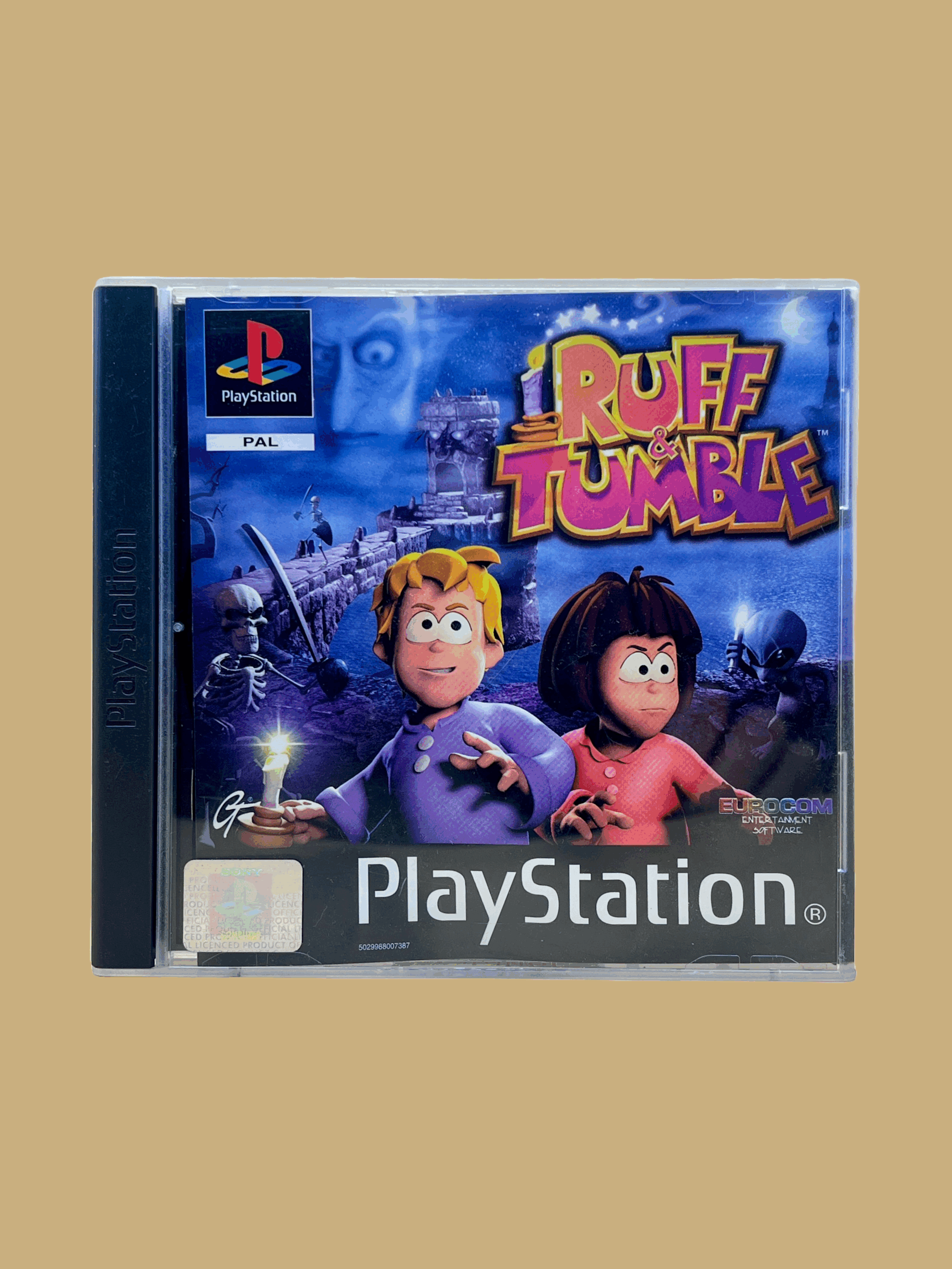 Ruff & Tumble for Sony PlayStation 1 is an action-packed platform adventure that takes players into a colorful and dangerous fantasy world. In Ruff & Tumble you take control of the brave hero Ruff, who sets out to fight monsters, collect treasures and save the land from dark forces. Each mission in Ruff & Tumble offers new enemies, demanding obstacles and exciting challenges that require skill, timing and a strategic approach.