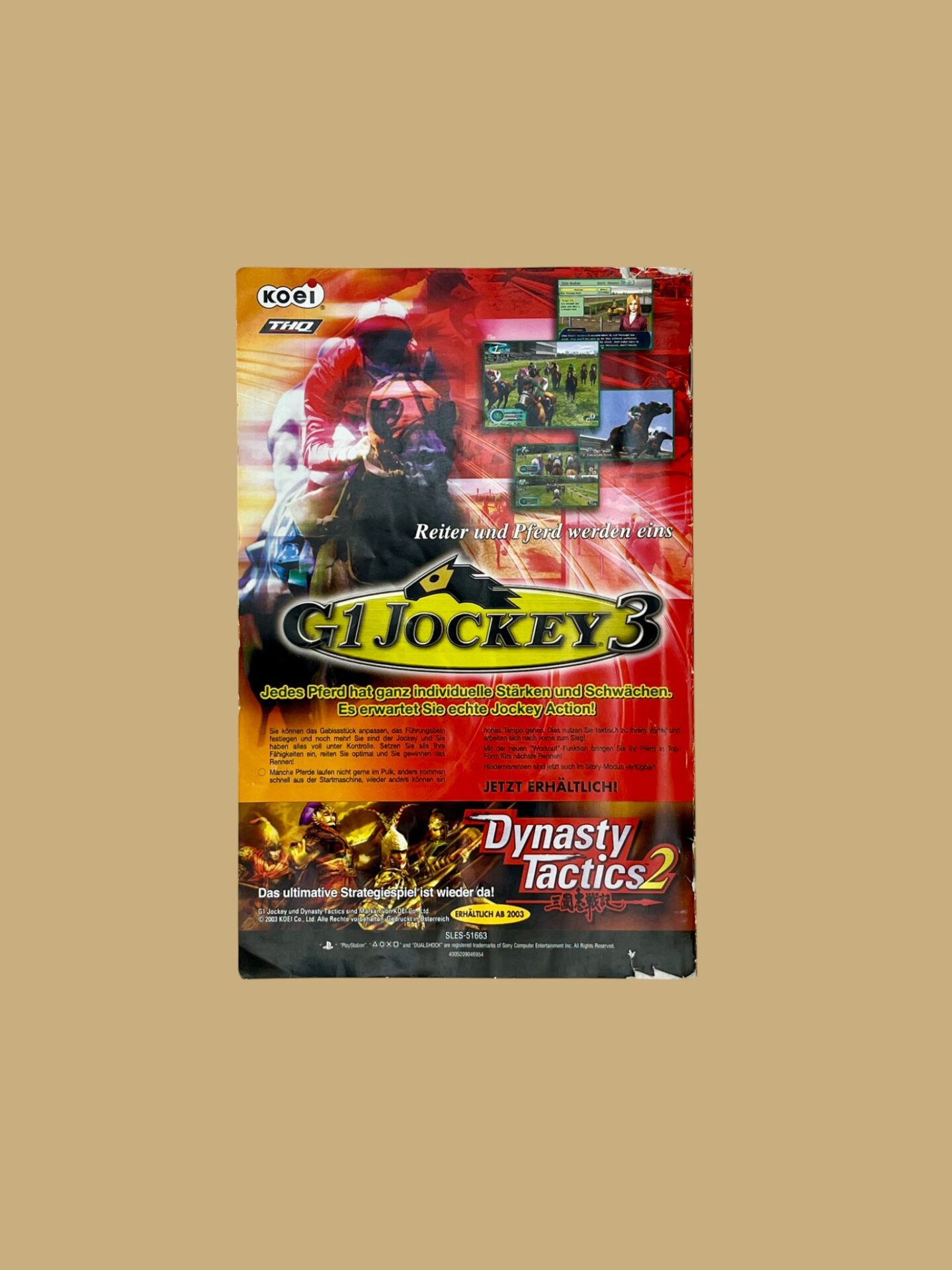 Dynasty Warriors 4 for Sony PlayStation 2 is an epic action game that puts the player in the middle of the mighty battles of ancient China. In Dynasty Warriors 4 for Sony PlayStation 2, players experience the famous historical events of the „Three Kingdoms“ in spectacular mass battles in which hundreds of opponents appear on the screen at the same time. As a mighty warrior, the player fights for glory, honor and the supremacy of his kingdom.