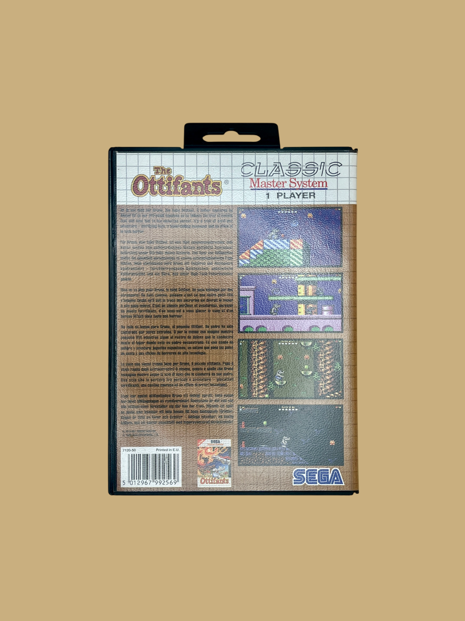 Grafisch überzeugt The Ottifants auf dem Sega Master System mit farbenfrohen Hintergründen, klar erkennbaren Figuren und flüssigen Animationen, die den Charme der Serie authentisch einfangen. Auch die Musik und die Soundeffekte in The Ottifants tragen zur fröhlichen Atmosphäre bei und machen jedes Level lebendig. Jeder Sprung, jedes eingesammelte Item und jeder überwundene Gegner in The Ottifants sorgt dafür, dass das Spiel abwechslungsreich und unterhaltsam bleibt.