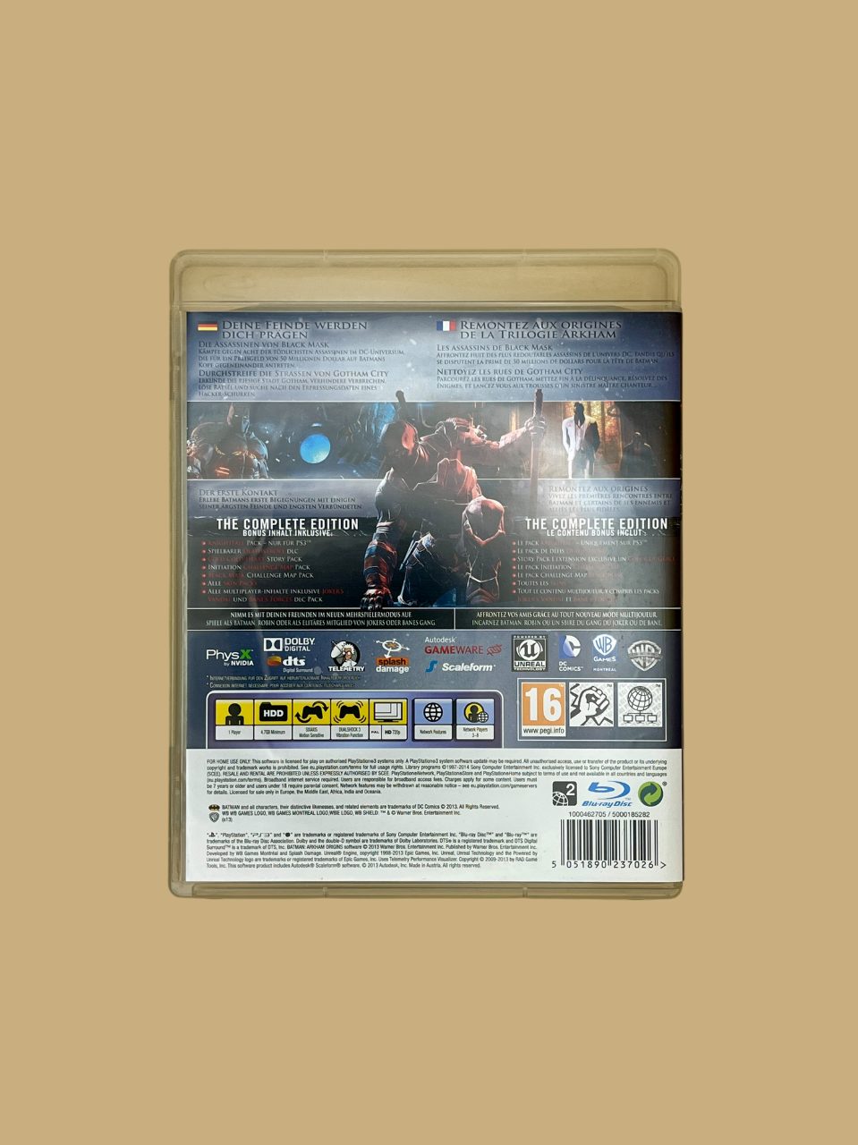 Auch technisch überzeugt Batman: Arkham Origins – The Complete Edition auf der Sony PlayStation 3 mit stimmungsvoller Grafik, cineastischen Zwischensequenzen und einem atmosphärischen Soundtrack. Die düstere Darstellung von Gotham City macht Batman: Arkham Origins – The Complete Edition zu einem intensiven Erlebnis – sowohl für neue Spieler als auch für Veteranen der Serie.